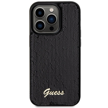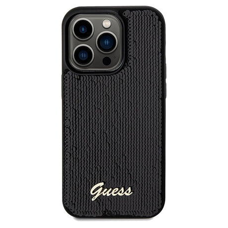 Guess Sequin Script Metallæske til iPhone 14 Pro Max - sort