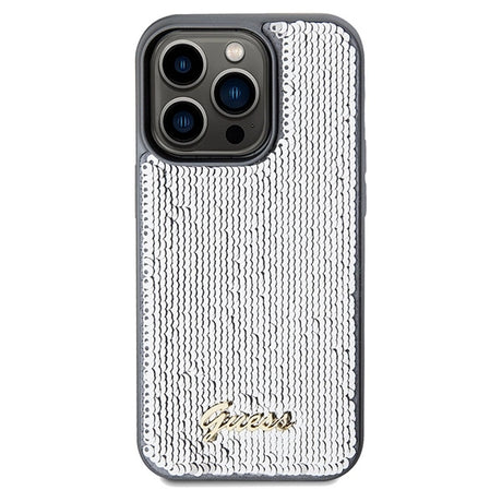 Guess Sequin Script Metallæske til iPhone 14 Pro - sølv