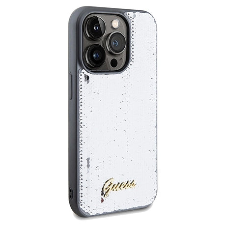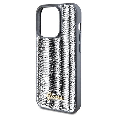 Guess Sequin Script Metallæske til iPhone 15 Pro - sølv