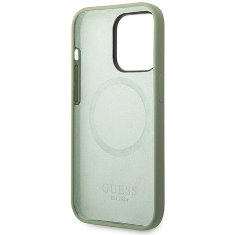 Guess Silicone Logo Plate MagSafe-hylster til iPhone 14 Pro Max - grønt