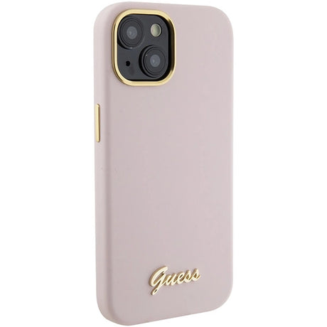 Guess Silicone Script Metal Logo & Frame Case til iPhone 15 - pink