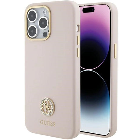 Guess Silicone Logo Strass 4G-hylster til iPhone 15 Pro - lyserød