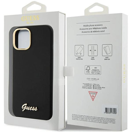 Guess Silicone Script Metal Logo & Frame Case til iPhone 15 - sort
