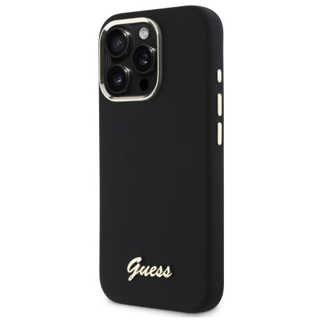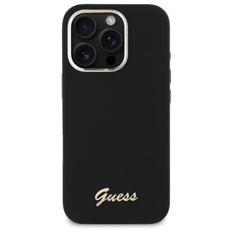 Guess Silicone Script Metal Logo & Frame Case til iPhone 16 Pro Max - sort