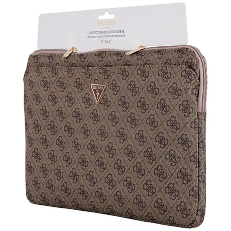 Guess Sleeve 4G Zipper Pocket Triangle Logo 14" Laptop Bag - Brown