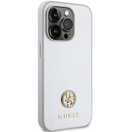 Guess Strass Metal Logo-hylster til iPhone 15 Pro - sølv