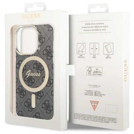 Guess 4G Logo Plate MagSafe Case til iPhone 16 Pro Max - Brunt
