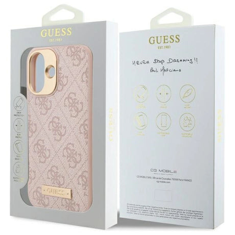 Guess 4G Logo Plate MagSafe iPhone 16 Case - Pink