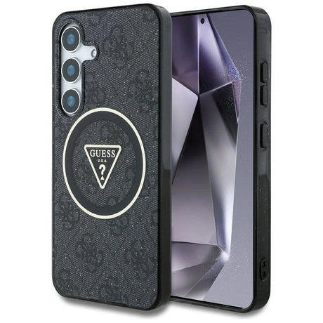 Guess 4G Glitter Triangle Buttons MagSafe-hylster til Samsung Galaxy S25 sort