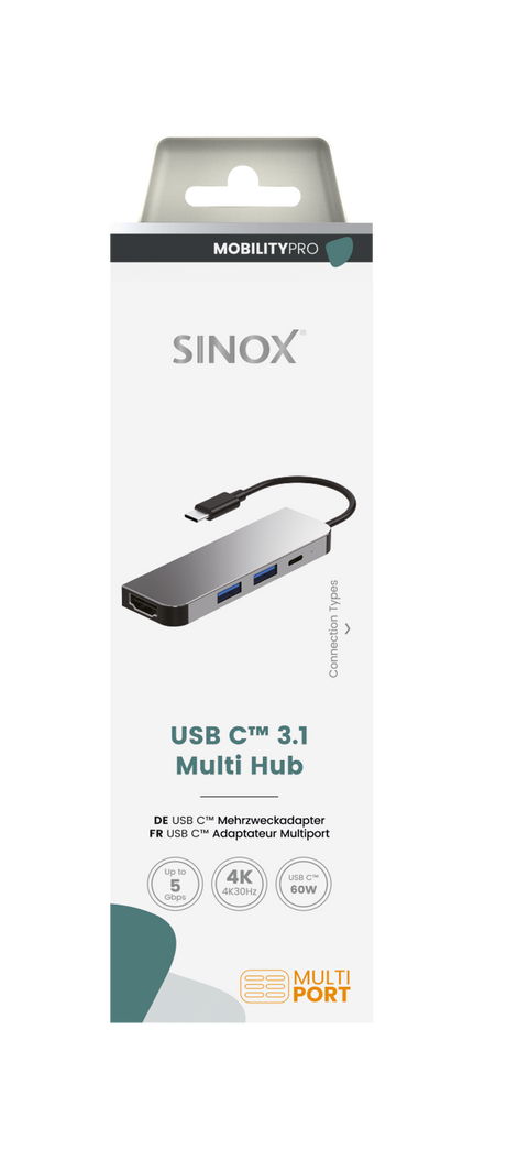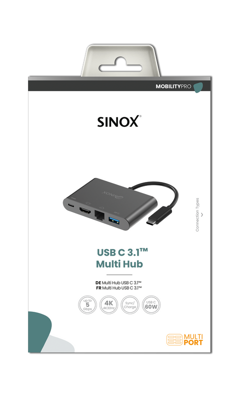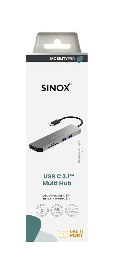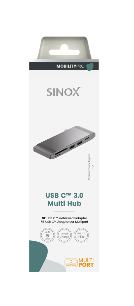 Sinox PRO USB C Hub. 0,15m. Aluminium