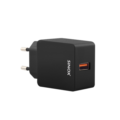 Sinox QC3.0 230V USB A oplader. 3,0A. Sort