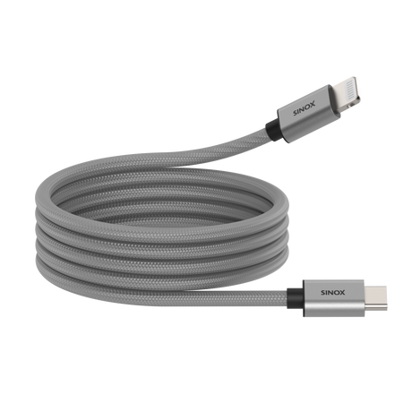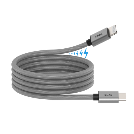 Sinox PRO USB C til Lightning magnetisk kabel. 1m. Grå