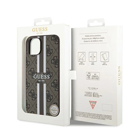 Guess 4G Printed Stripes MagSafe case til iPhone 15/14/13 - brun