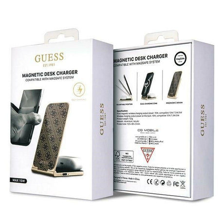 Guess 4G Pattern MagSafe foldable 2in1 15W induktiv oplader - brun