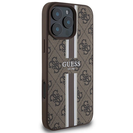 Guess 4G Printed Stripes MagSafe Case til iPhone 16 Pro Max - Brunt