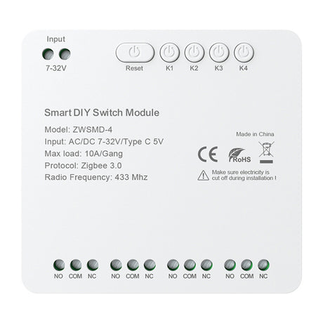 4-kanals ZigBee-switch-modul med spændingsfri DC 32V-kontakt Avatto ZWSMMD-4-32V