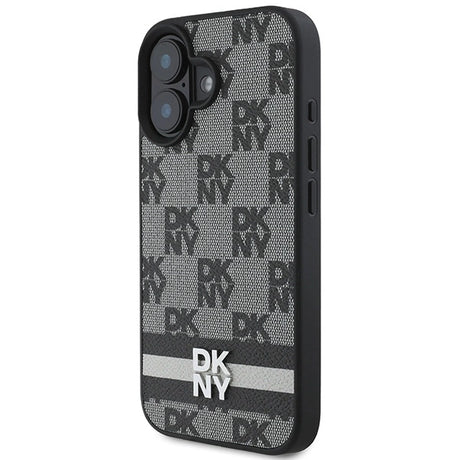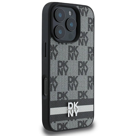 DKNY Checkered Pattern & Printed Stripes Case for iPhone 16 Pro - Black