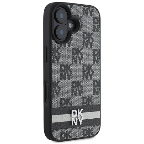 DKNY Checkered Pattern & Printed Stripes iPhone 16 Case - Black