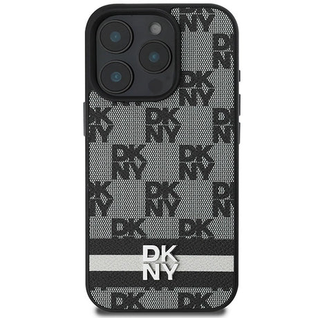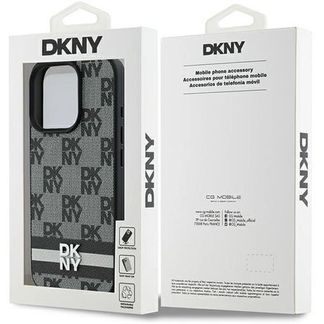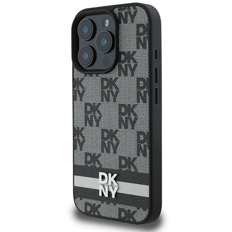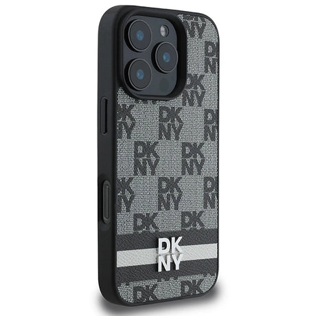 DKNY Checkered Pattern & Printed Stripes Case for iPhone 16 Pro Max - Black