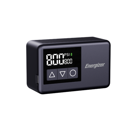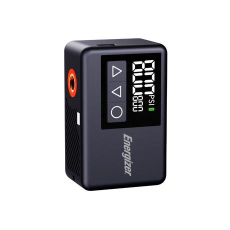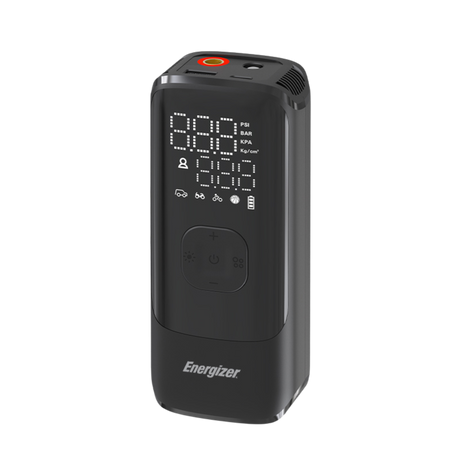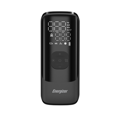 Energizer højtydende dækpumpe med 150 PSI max tryk. Sort