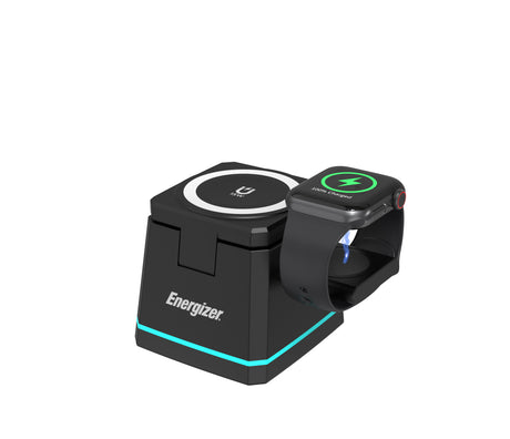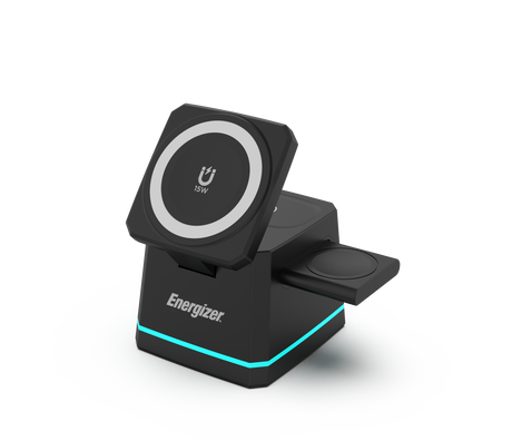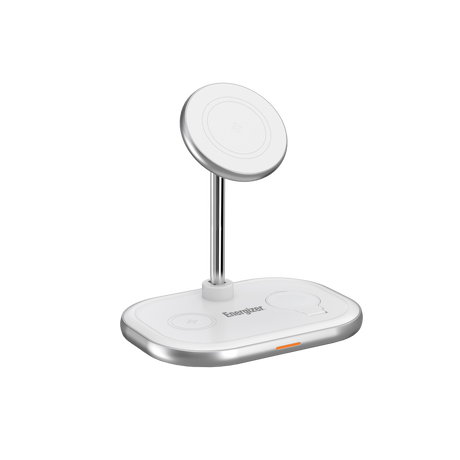 Energizer 3-i-1 trådløs oplader med 15W hurtigopladning. Hvid