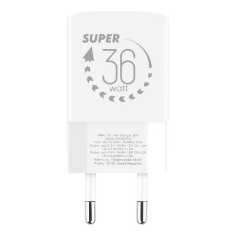 OBAL:ME GaN Wall Charger USB-A + USB-C 36W White