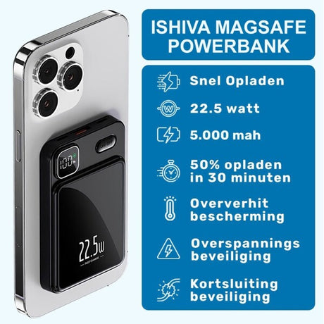 UFUZON Ishiva Magnetisk Trådløs Powerbank 5000 mAh, 22,5W USB-C