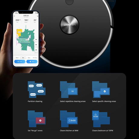 UWANT U100 Robotstøvsuger med Mop-funktion + opladnings-/rensestation - sort