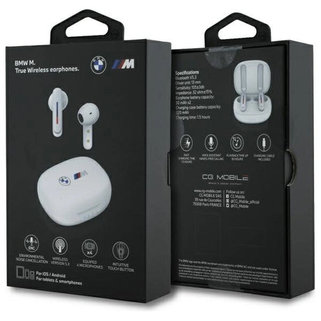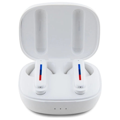 BMW Bluetooth-hovedtelefoner BMBEMIATP20LOH TWS + docking station hvid/hvid trykte logoer