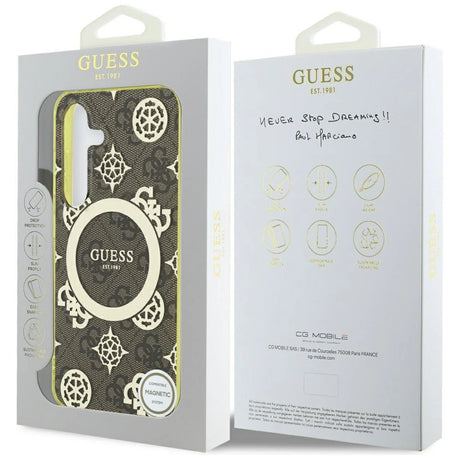 Guess 4G Baggrund Guld Elektrobelagt Peony mønster MagSafe-hylster til Samsung Galaxy S25 brun