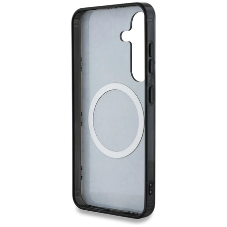Guess 4G Baggrund Guld Elektrobelagt Peony mønster MagSafe-hylster til Samsung Galaxy S25 sort