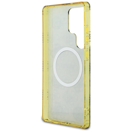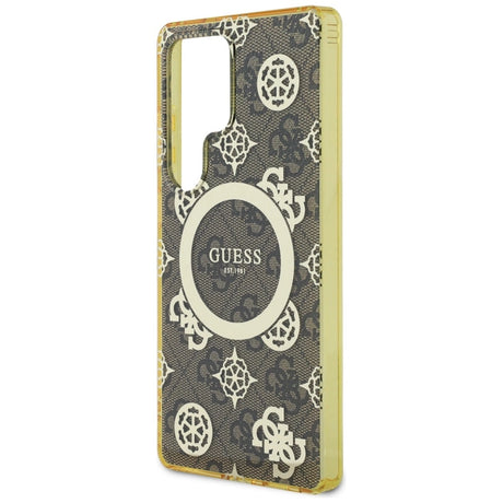 Guess 4G Baggrund Guld Elektrobelagt Peony mønster MagSafe Case til Samsung Galaxy S25 Ultra Brown