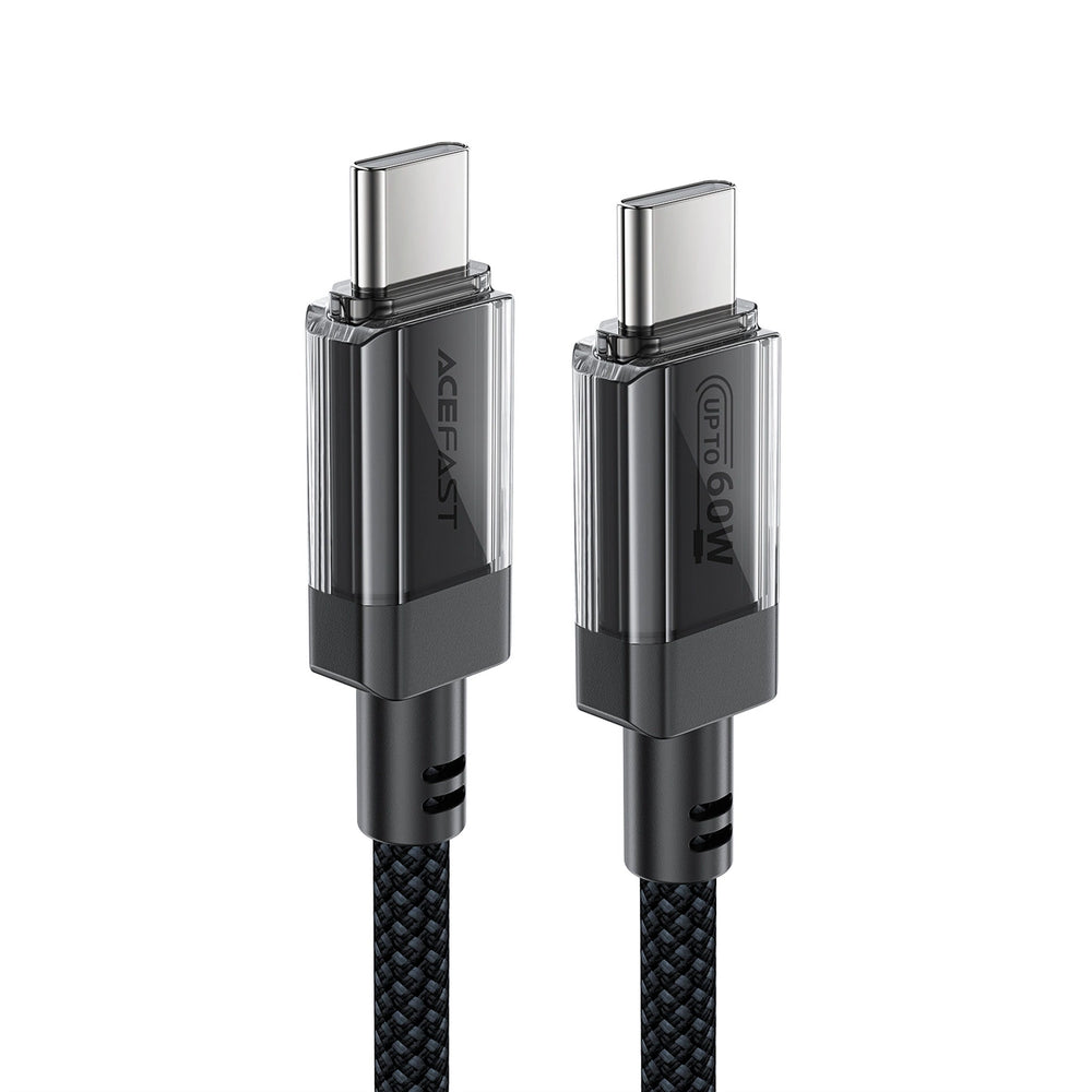Acefast C12 USB-C / USB-C PD-kabel 60W 480Mb / med nylon fletning - sort