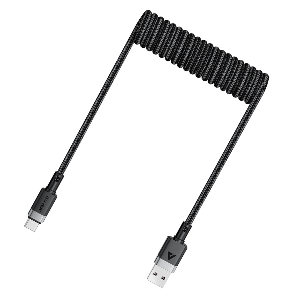 Acefast C14-04 USB-A - USB-C Cable Spring 480Mb/s 3A 1.2m - Black