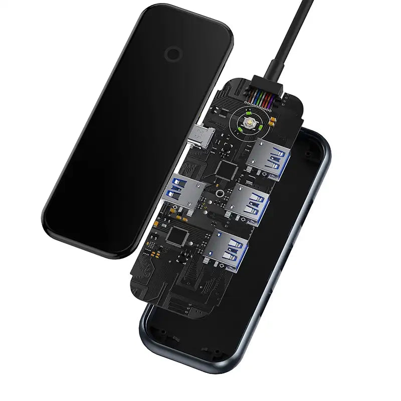 Expand your possibilities with the 4-in-1 adapter from Baseus! The device features 4 USB 3.0 ports, with which you can transfer files at speeds of up to 500 MB. It supports the OTG function, as well as ensuring the safety of use. It also stands out for its wide compatibility, and its stylish and modern design will delight everyone.
