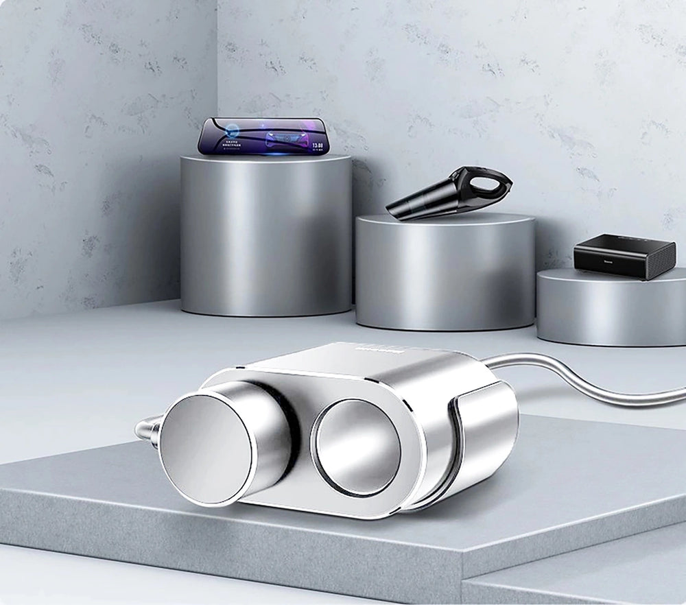 The compact design of the Baseus CRDYQ-0S distributor makes the device extremely handy and does not take up much space in the car. Its small size allows easy storage in a glove compartment or door pocket. The minimalist design and silver finish further enrich the car's interior, and thanks to the spring clip, the lighter stays firmly in place and works reliably even when driving over bumps.