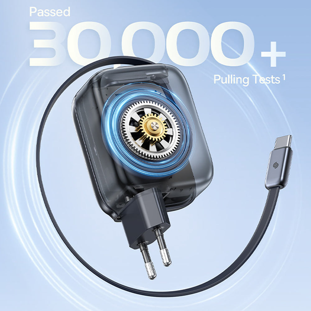 The Baseus EnerCore CJ11 is a practical wall charger equipped with a USB-C port and an integrated retractable USB-C cable for convenient and tidy charging. Up to 45W of power allows for quick charging of compatible devices, and the compact design makes the charger ideal for home, work, and travel. The retractable cable mechanism simplifies cable organization, and the robust construction ensures reliable use every day.