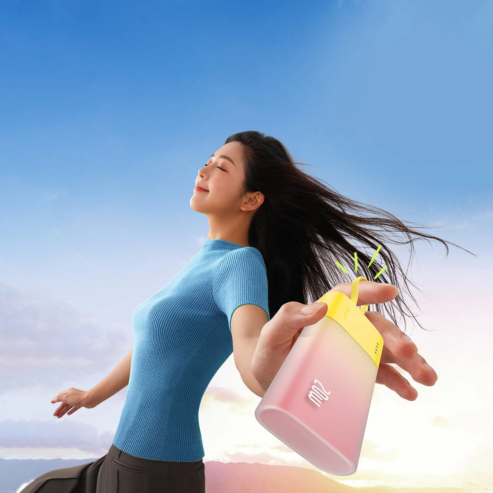 The semi-transparent casing in gradient colors gives the power bank a modern, fresh look. It is the perfect addition to any style, especially during summer adventures!