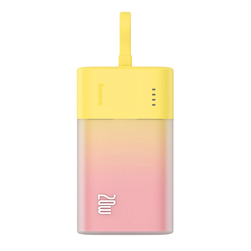 Baseus Popsicle 5200mAh 20W Powerbank with Built-in Lightning Cable (+ White Baseus Simple USB-C - USB-C 60W/20V/3A/30cm Cable) - Yellow-Pink