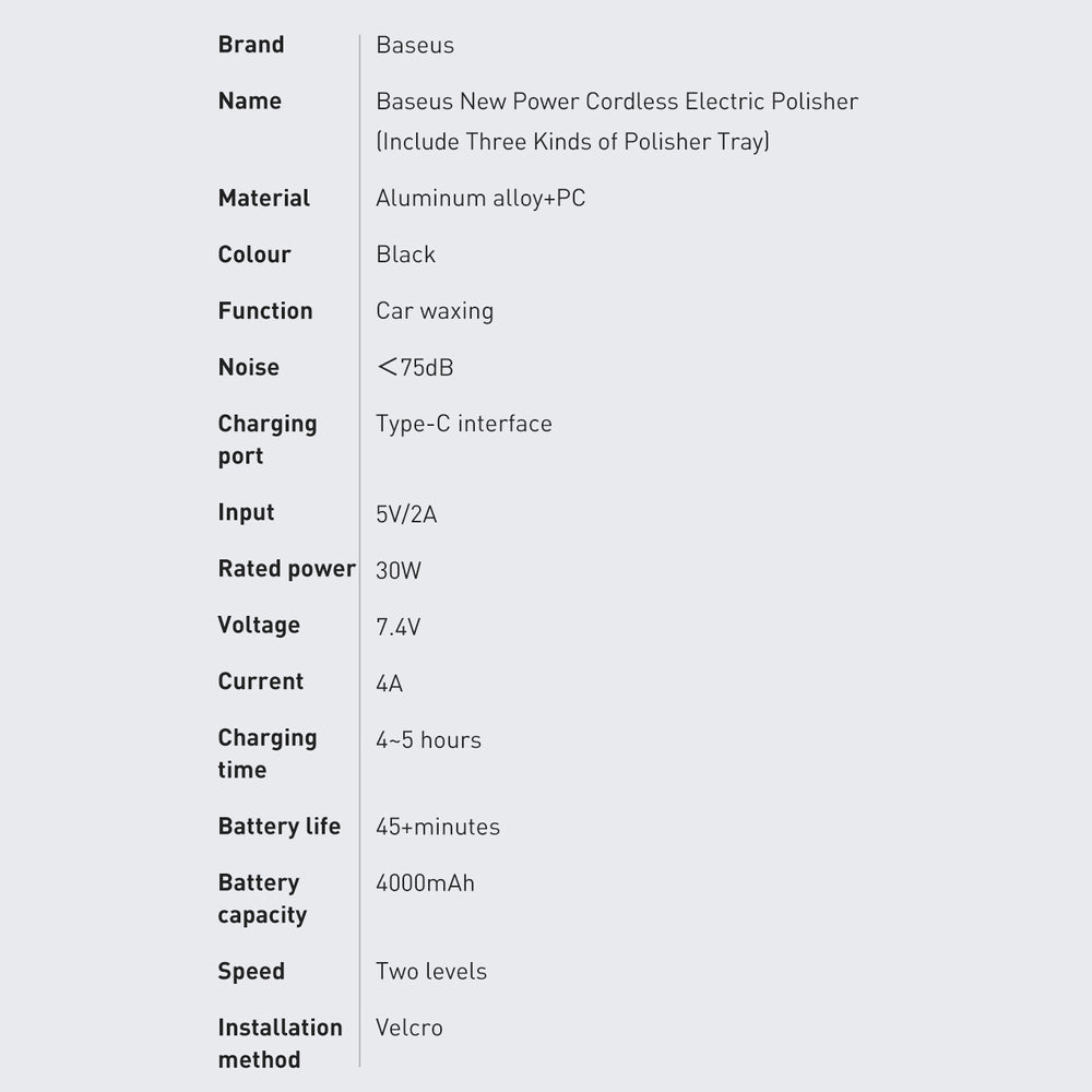 Baseus trådløs elektrisk poleringsmaskine 30W 4000mAh sort (CRDLQ-B01)