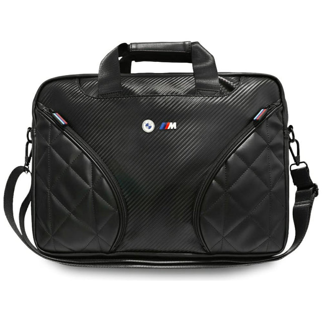 BMW Carbon Pockets & Metal Logo 16" Laptop Bag - sort
