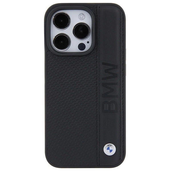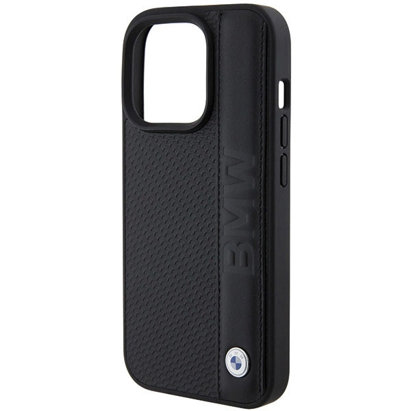 BMW læder tekstureret og stribet iPhone 15 Pro Max-kasse - sort