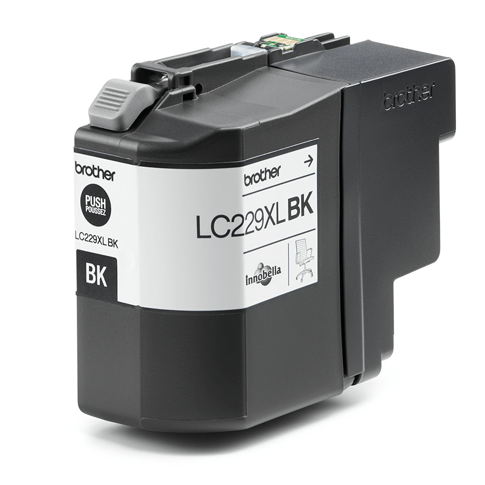 Brother LC229XLBK. Forsyningstype: Enkelt pakke, Udskrivning af farver: Sort, Antal pr. pakke: 1 stk, Sort blæk sidekapacitet: 2400 Sider