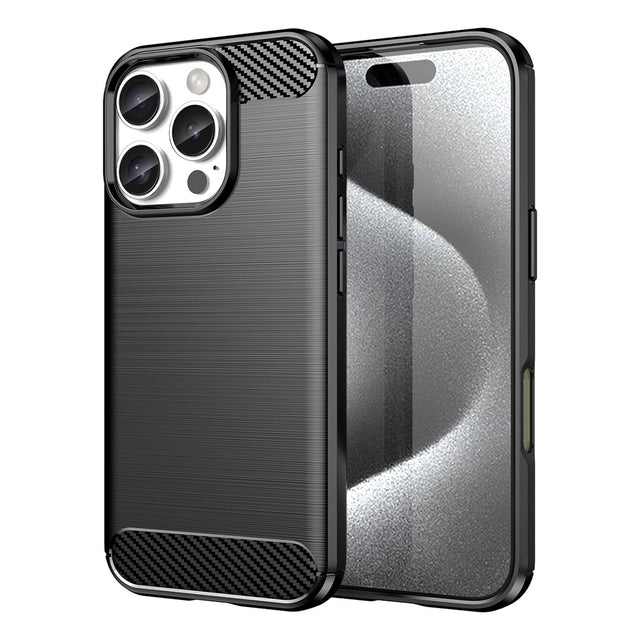 Carbon Case Silikonhülle für iPhone 16 Pro - schwarz