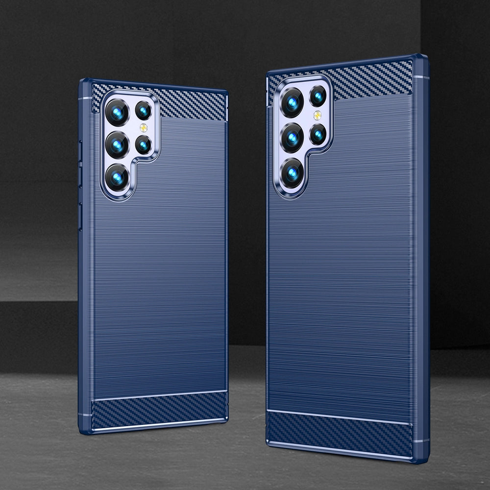 Carbon Case til Samsung Galaxy S23 Ultra fleksible silikone carbon cover blå .