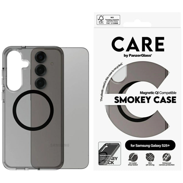 CARE af PanzerGlass Flagship Urban Combat Black QI Case til Samsung Galaxy S25+ - Halvt gennemsigtig røg .