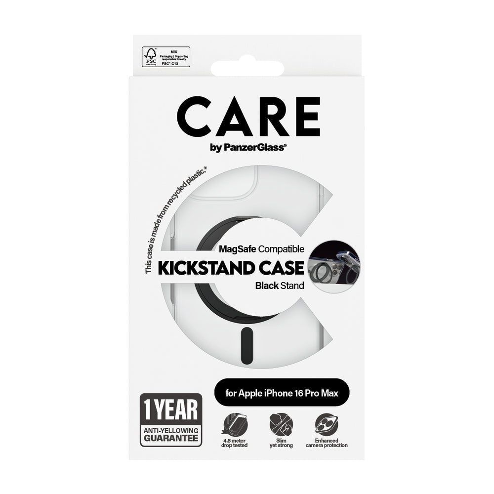 PanzerGlass CARE by ® Feature Case Transparent m. Sort Kickstand & MagSafe iPhone 16 Pro Max .