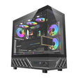 The case is equipped with two transparent panels without a vertical profile, providing a wide view of the components. This design allows for interesting visual effects – for example, you can showcase RGB fans or water cooling with a display. Give your computer a unique character!