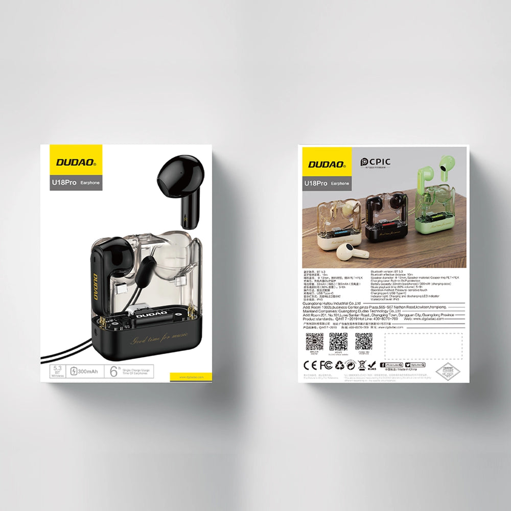 Whether you're listening to music on the go or while training, Dudao U18Pro ensures a perfect fit. Their ergonomic design makes them comfortable to wear, and the transparent housing adds lightness and style.