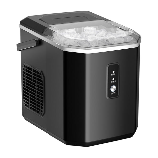 The Euhomy IM011 is a portable ice cube maker that can easily fit on a kitchen counter or in an RV. Thanks to its sturdy handle, you can take it virtually anywhere. Despite its small size, it offers a capacity of about 12 kg of ice per day, which is enough even for heavy use on hot days.